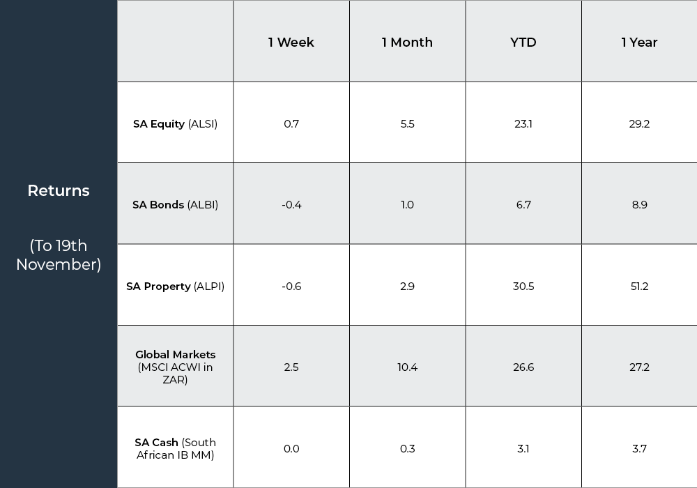 Below is the one year returns as supplied by Ninety One. South Africa equities exceeded